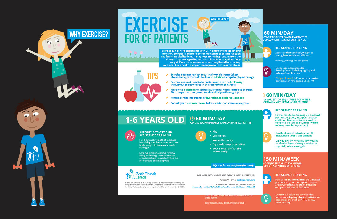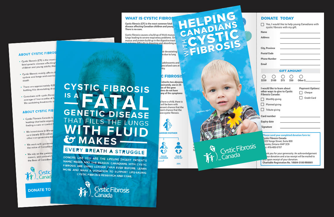 Multiple pieces have been created for Cystic Fibrosis Canada over the years. Everything from post cards and brochures, to large-scale annual reports. Most pieces are accompanied by illustrations and icons created by myself. Each piece that is created must adhere to specific brand guidelines created by the company to keep a cohesive look and feel across all platforms.
