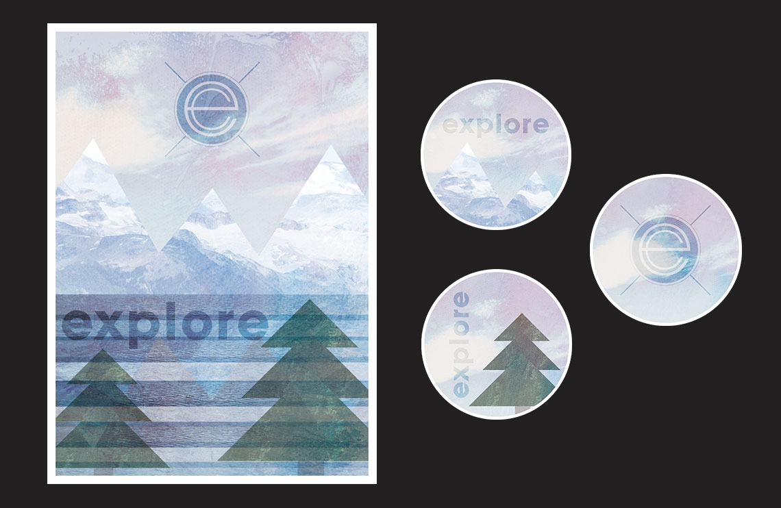 A fun project for where I created a poster and coasters using photographs I had taken in British Columbia. Exploring shapes and textures.